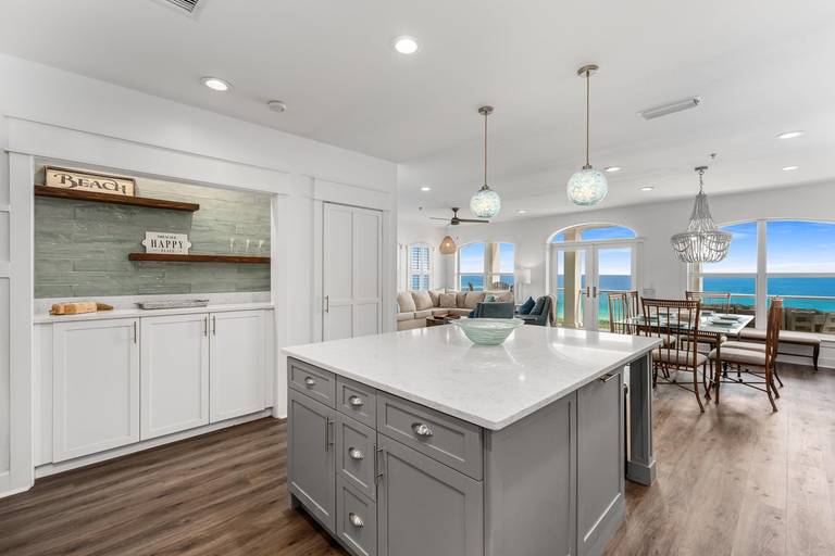 Panhandle Getaways furnishes a few essential items for guests to utilize until they can get to the grocery store. Initial Supplies include: Dishwasher soap, small washing machine powder, each bathroom has amenities (like hotel but NOT restocked) shampoo, conditioner, soap bar and body wash. One roll of toilet paper in each bathroom & one paper towel roll in the kitchen. All bed linens & towels are provided. We encourage guests to bring beach towels for use at the pool and beach.