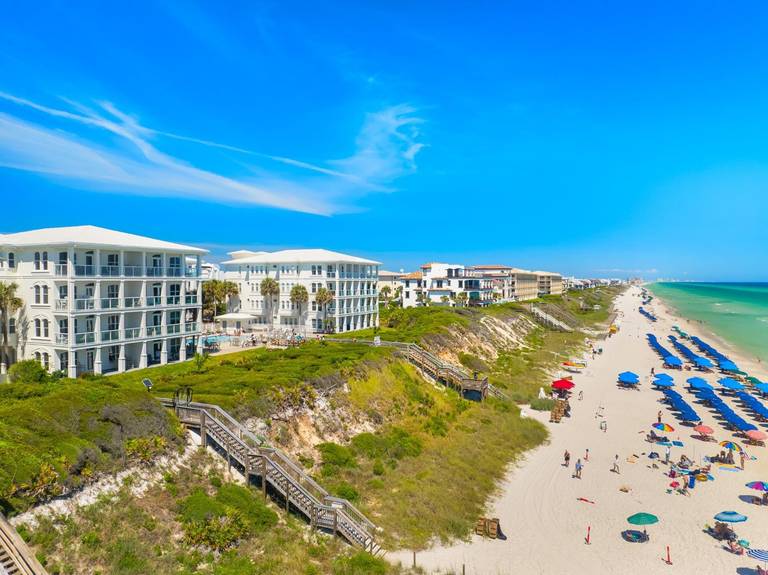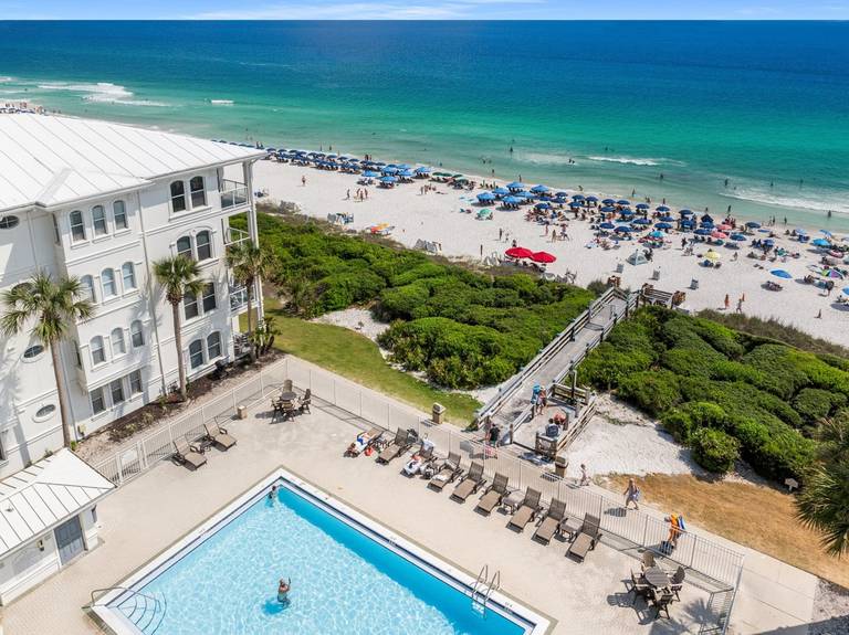 Villas at Sunset Beach is located in Seacrest, FL and nestled between Alys Beach & Rosemary on the south side of 30A. This location is fantastic and within steps to the beach. Guests will enjoy easy access to the community gulf front pool along with convenient access to family friendlly restaurants and shopping.